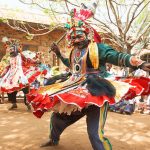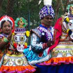 This is the Dummy Horse Dance where the dancer bears the dummy figure of a horse’s body on his/her hips. This is made of light-weighted materials and the cloth at the sides swings to and fro covering the legs of the dancer. The dancer dons wooden legs, which sound like the hooves of the horse. The dancer brandishes either a sword or a whip. This folk dance needs much training and skill. This dance is accompanied by Nayyāndi Méḷam or Band music. This is connected to the worship of Iyyanār and prevails mainly around Thanjāvūr.