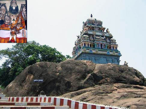 - This is a beautiful rock cut temple. The temple and even the deity is carved out of a small hillock. In Sanskrit Pāthala adhri means a reddish hill. The original name of this place itself is Pāthalādhri puram. The main sanctum itself is a rock cut shrine on which the deity too is carved out of the hill itself. So, whoever wants to do circumambulation around the temple has to actually go around the small hillock as Giri Pradhakṣhiṇam. Hence, Giri Pradhakṣhiṇam is very popular here.